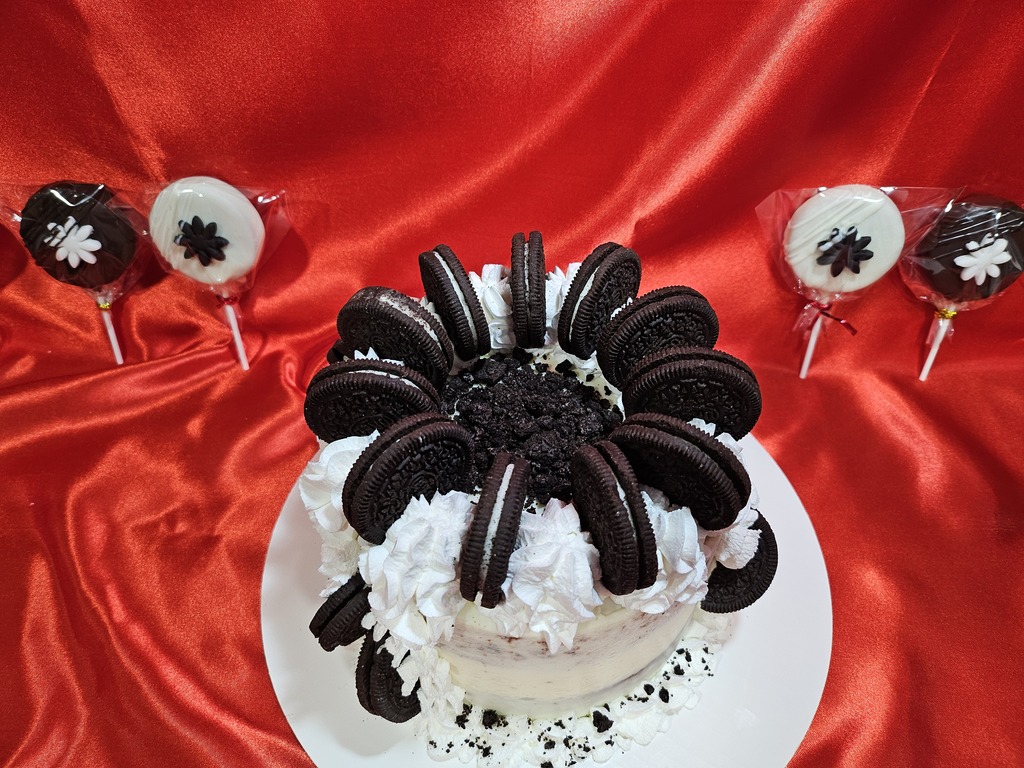 Bizcocho de Oreo relleno de cremoso frosting de queso y cubierta con un delicioso butternut de chocolate blanco. ¡Un placer único para los amantes de Oreo!